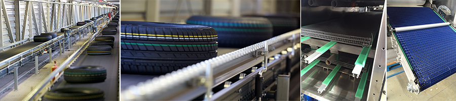 公司所生產(chǎn)的的輸送帶可滿足輪胎加工工段包括橡膠混煉工段(混煉是輪胎生產(chǎn)眾多重要步驟的第一步,先將橡膠與大量化學(xué)藥品在密煉機(jī)內(nèi)進(jìn)行密煉混合,每批可生產(chǎn)大約200多公斤的橡膠混合物),膠片冷卻輸送(經(jīng)密煉后的橡膠進(jìn)行一系列處理后,膠料變成一張連續(xù)的薄片,該過程包括橡膠條和橡膠片的浸漬,冷卻,干燥和堆積),擠出壓延輸送(混煉完畢的膠片在開煉機(jī)上加熱,通過沖模,產(chǎn)出平板、輪胎壁、三角膠及其它厚重部件,壓延則是把混好的橡膠加上不同的布層包括滌綸、尼龍、人造棉、芳綸等等或鋼絲來(lái)產(chǎn)生橡膠復(fù)合片的過程),二工位卷曲系統(tǒng),輪胎成型處理和硫化,質(zhì)檢,倉(cāng)庫(kù)存儲(chǔ)系統(tǒng)等。延誼提供帶有導(dǎo)向條的和平皮帶的纏繞式纖維布,超寬同步帶可解決二工位卷曲和輪胎成型硫化工段的輸送問題。