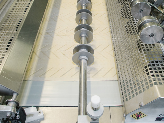藍(lán)色,在食品加工行業(yè)中是比較容易識別的顏色。在國外的食品加工機(jī)械中,藍(lán)色的輸送帶是比較流行的。因?yàn)樵谏a(chǎn)加工工程中,難免受到不可抗拒力或未及時(shí)發(fā) 現(xiàn)的生產(chǎn)設(shè)備機(jī)械事故,如果輸送帶受到嚴(yán)重?fù)p壞,可能會部分,局部創(chuàng)傷甚至脫落,從而在未知的情況下混入食品,造成嚴(yán)重的質(zhì)量事故。因此,使用藍(lán)色的輸送 帶,從視覺外觀上,一旦發(fā)現(xiàn),例如面包,餅干等產(chǎn)品中出現(xiàn)藍(lán)色,則立即可以停止繼續(xù)生產(chǎn),并及時(shí)找到事故地點(diǎn),以免造成食品安全事故。