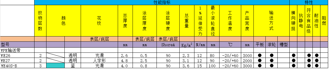 PE輸送帶具有抗拉強度高、曲繞性好、輕薄、耐油、無毒衛生、易清潔等特點。PE輸送帶符合美國的FDA食品衛生標準,輸送帶其具有很好的耐磨性和抗物理老化性,是一種經久耐用的輸送帶產品。