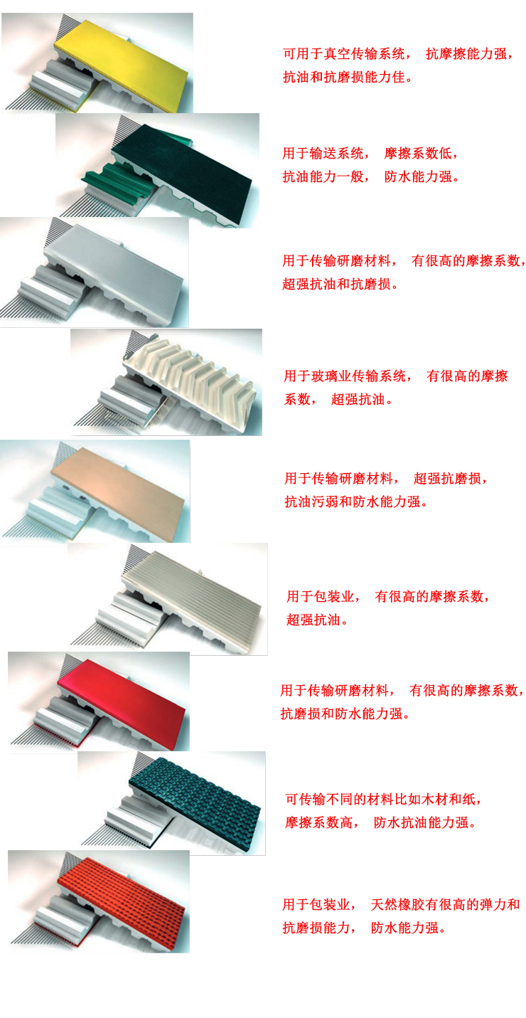 生產加工各類輸送帶.裙邊.擋板.導條.同步帶覆花紋、紅/白/綠膠、擋塊/沖孔、開齒特殊加工全國******、全面提供解決行業應用方案。