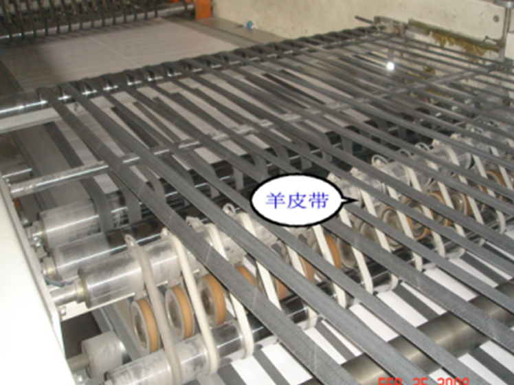 片基帶屬于平面高速傳動帶,通常片基帶中間有尼龍片基層,表面覆蓋有橡膠、牛皮、纖維布;分為橡膠 尼龍片基帶和牛皮尼龍片基帶。帶厚通常在0.8-6mm范圍。尼龍片基帶的材料結構創新獨特,較之傳統的 帆布傳動帶和三角帶具有:拉力強、耐曲撓、效率高、噪音小、耐疲勞、耐磨性能良好、使用壽命長等優點。 產品用途:適用于傳動機構緊湊、使用線速高、速比大的場合。如:卷煙、煙機、造紙、印刷、紡 織機械、暖通設備、金屬設備、自動販賣設備及軍工等行業。也有用于電子行業基板線、SMT設備、電路 板輸送等。