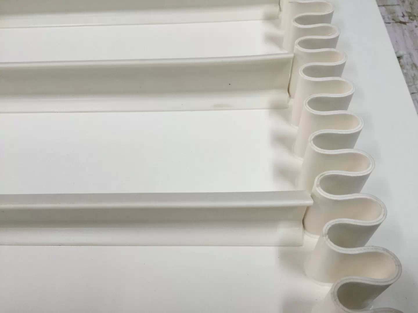 裙邊擋板輸送帶特殊定制說明: 加擋塊——擋塊樣式、大小、數量、顏色根據客戶來圖來樣定制加工;