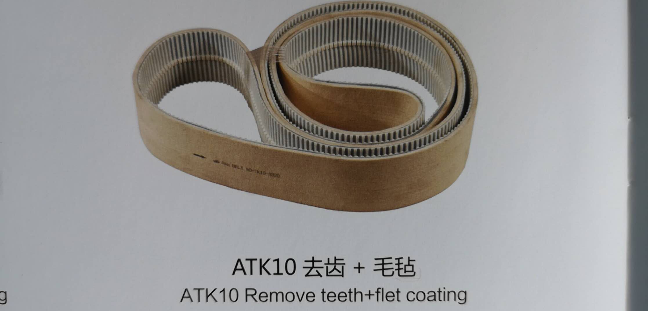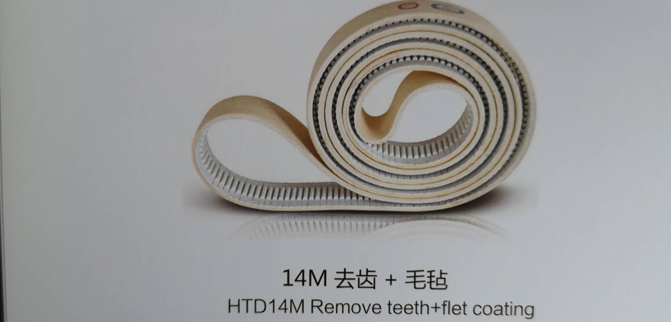 PU同步帶是我司另一項國家專利產品,其采用的工藝要求相當高,將同步帶和毛氈熱熔在一起,而不是用膠水粘貼,使兩者不易分開。