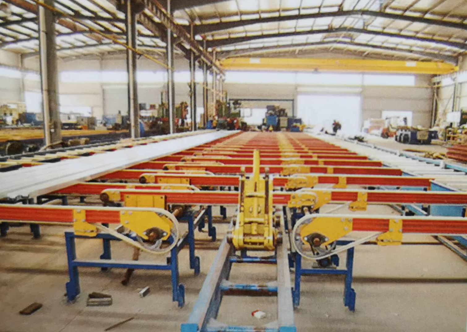 鋁型材高溫式輸送生產線,是一種鋁型材廠家及企業必備的鋁材生產裝置,特別是防止型材二次刮傷、變形,極大地提高型材檔次、品質本產品吸收了國內外同類產品制作精華,采用著名品牌耐高溫毛氈輸送帶,無級調速的高溫毛氈滾筒輸送。可手動或自動的輸送生產線與矯直機和液壓成品鋸床整套配合,組合成完美的自動化生產線,更進一步提高了生產效率和工藝要求,廣泛用于大、中、小企業。本產品具有技術先進、結構合理、工藝精致、外觀美觀、使用效果好、能耗低、運行寧靜等特點,是理想的鋁材新穎設備。根據結構可分為平移式冷床和皮帶式冷床及獨立換帶立冷床生產線。