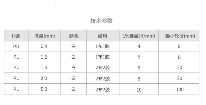 材質:PU白色輸送帶