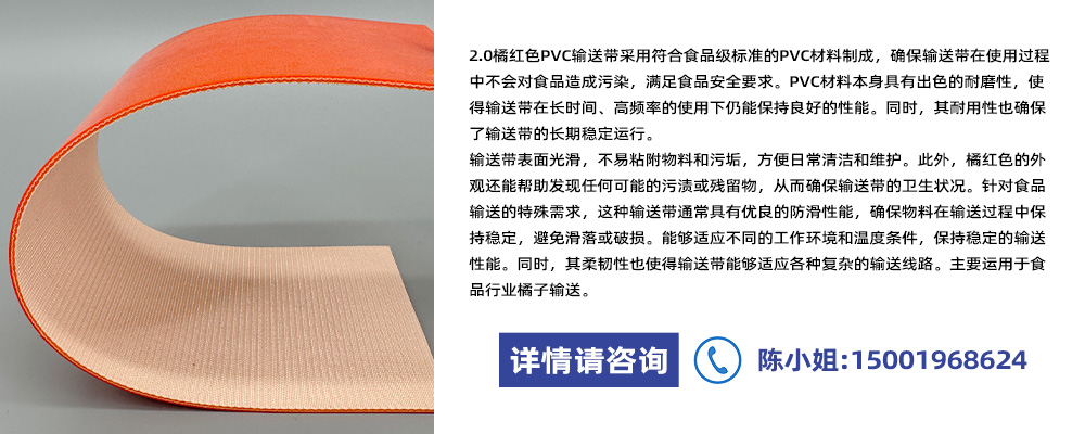 您現在的位置:產品展示>2.0橘紅色PVC輸送帶(橙子輸送)